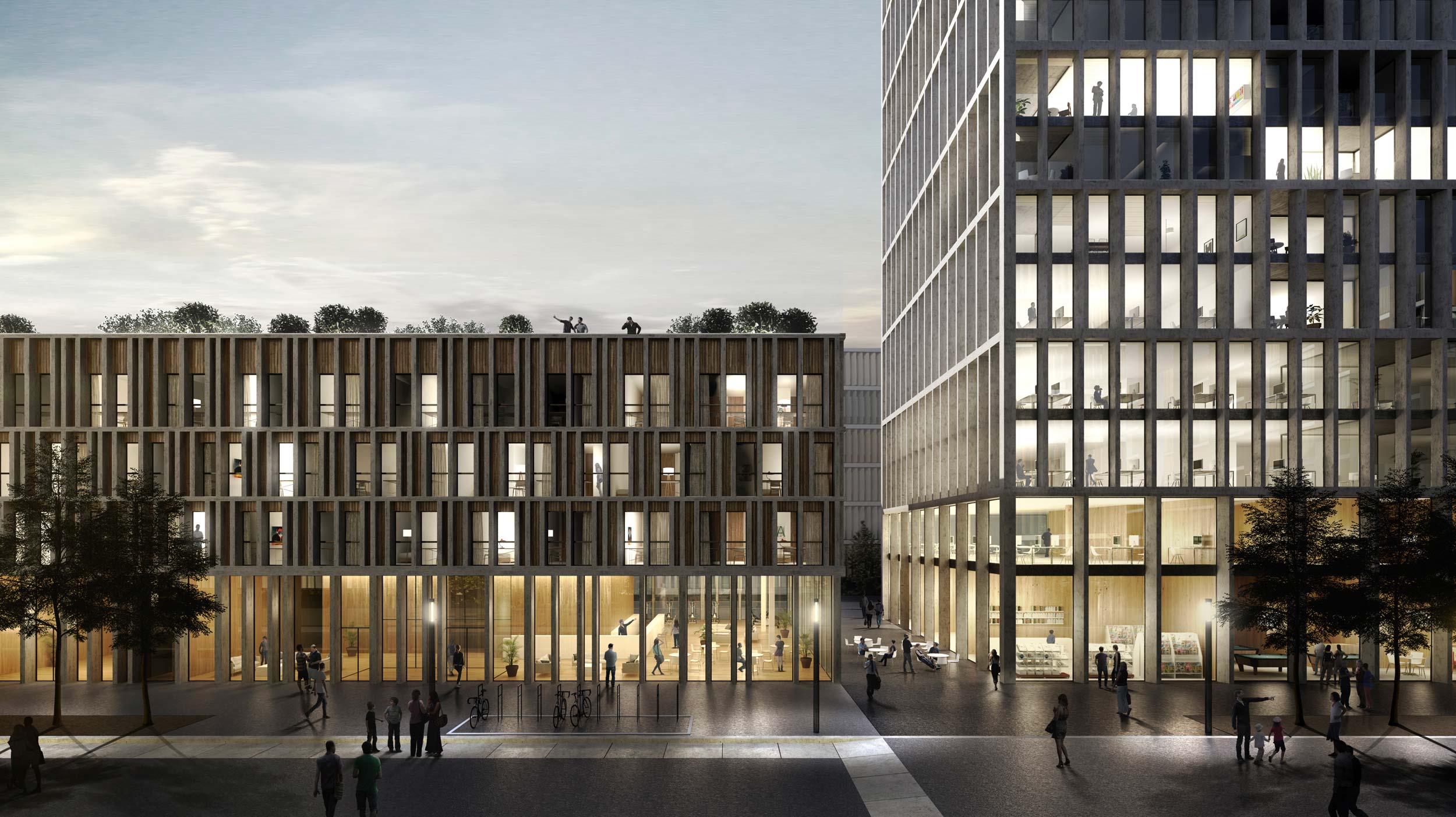Studentisches Wohnhaus, Hochhaus mit Mischnutzung und ein Hotel mit zwei Untergeschosse inklusive Tiefgarage, in Bern.